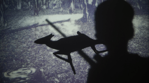 Boy approaching deer