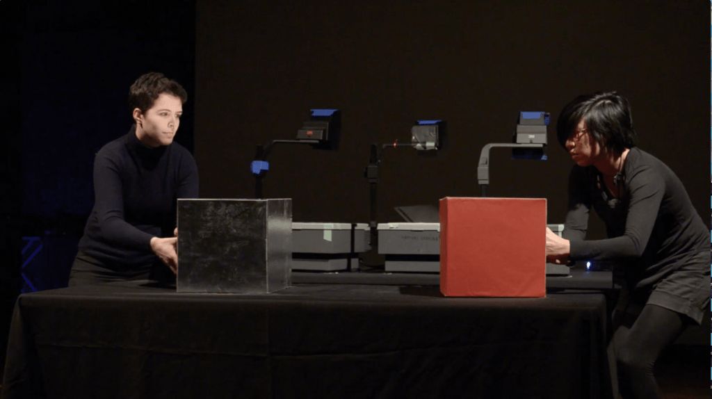 AN INTER–DIMENSIONAL LOVE STORY follows a long distance relationship between a square and a cube. Inspired by the ideas in Edwin A. Abbott’s ‘Flatland,’ a2 is a square who lives a monotonous, prescribed routine each day. But his life is turned upside down when he falls in love with a three-dimensional being, Charlotte. In order to reach her, he travels between the 2D and 3D world, wherein each dimension is represented by a different style of puppetry.