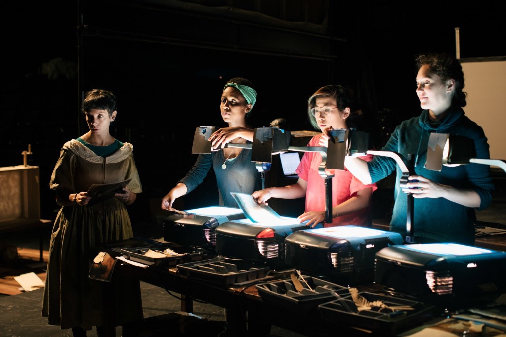 For the past few weeks, I’ve been in rehearsals full-time for Manual Cinema’s FRANKENSTEIN at Court Theatre. The show combines shadow puppetry, live camera work, crankie, and tabletop. Using these different styles of puppetry, the production in turn interweaves Mary Shelley’s personal narrative with FRANKENSTEIN’s multiple frames of perspective: Captain Walton, Victor Frankenstein, and finally, the Creature.