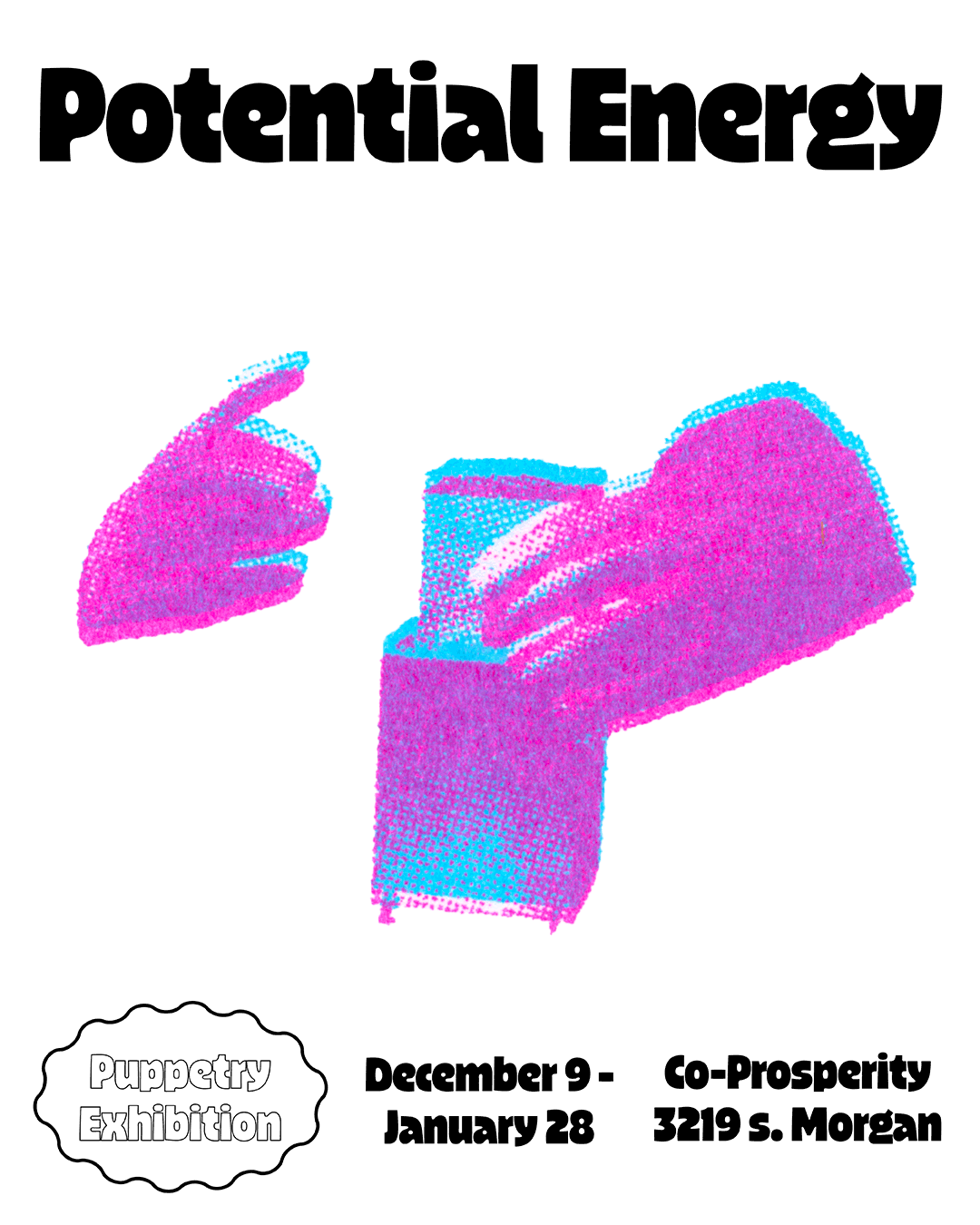 Co Prosperity is thrilled to present Potential Energy. Please join our opening reception and Puppets in Progress program on December 9th from 3:00 PM – 9:00 PM.