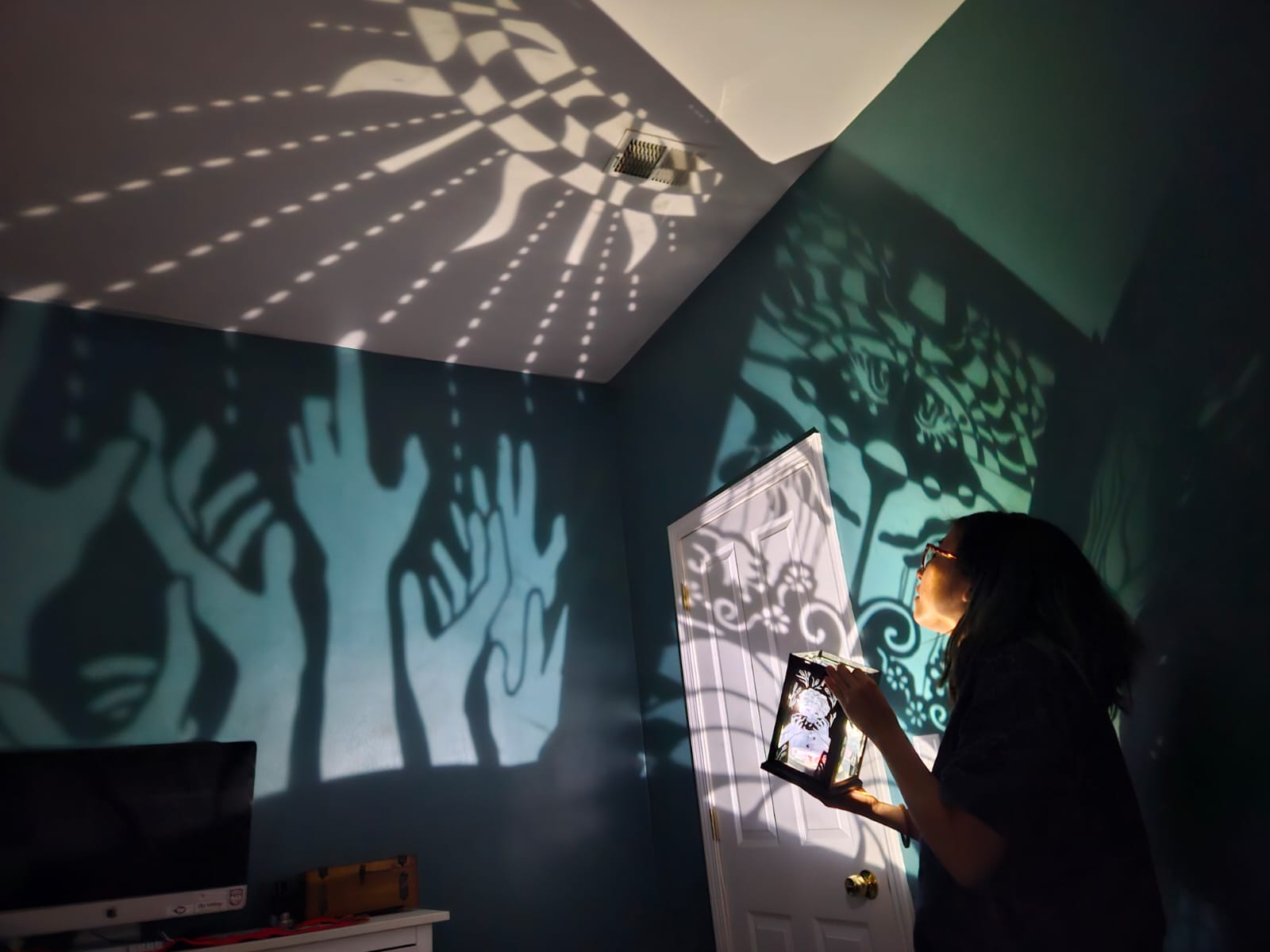 However, in order to cast shadows from inside the lantern, I had to build a custom circuit with a pinspot LED and rotatable base.