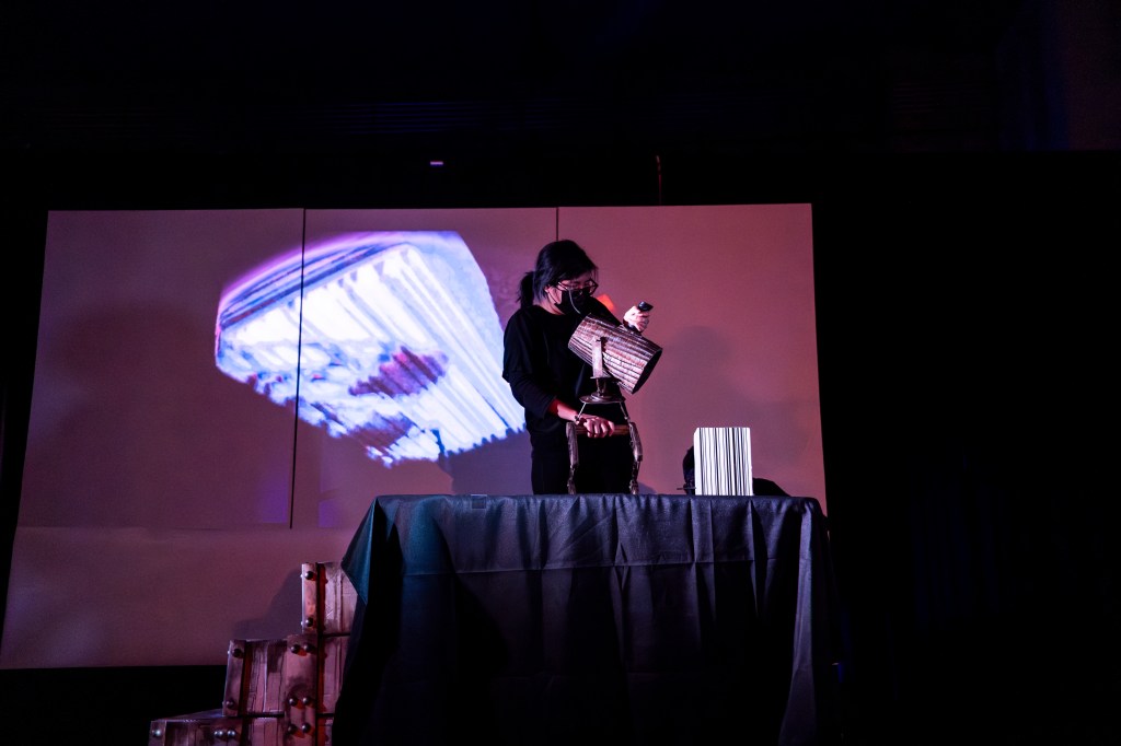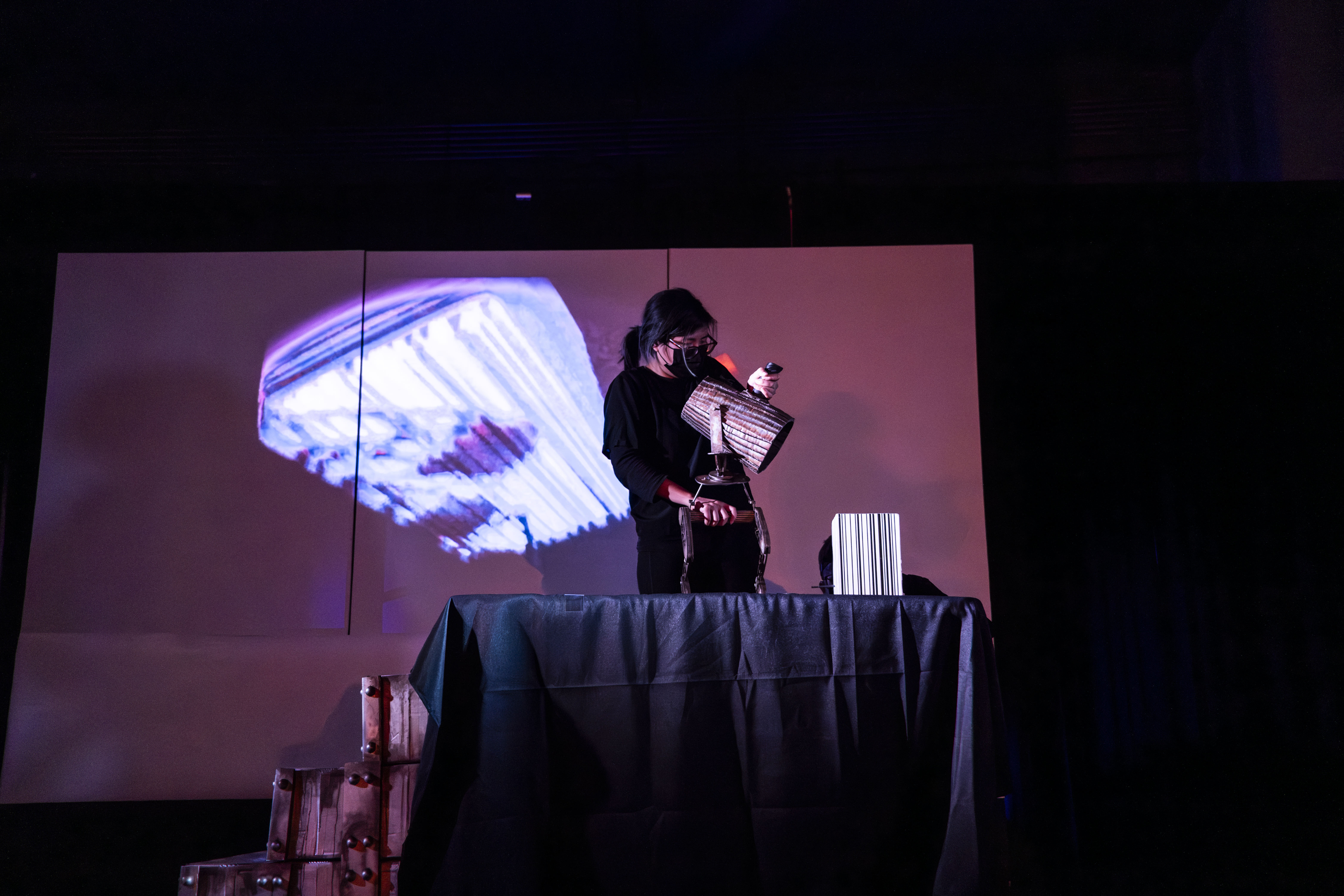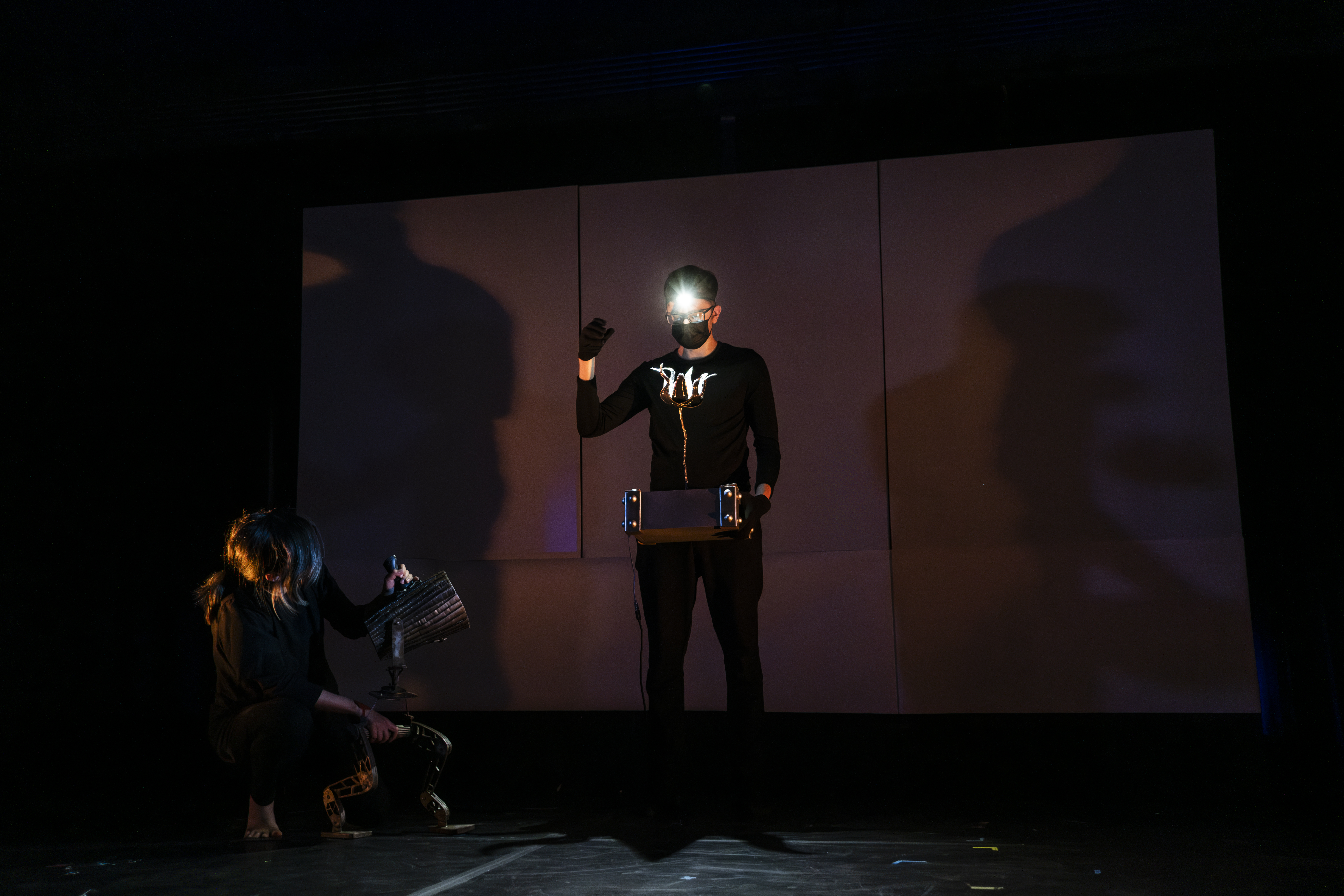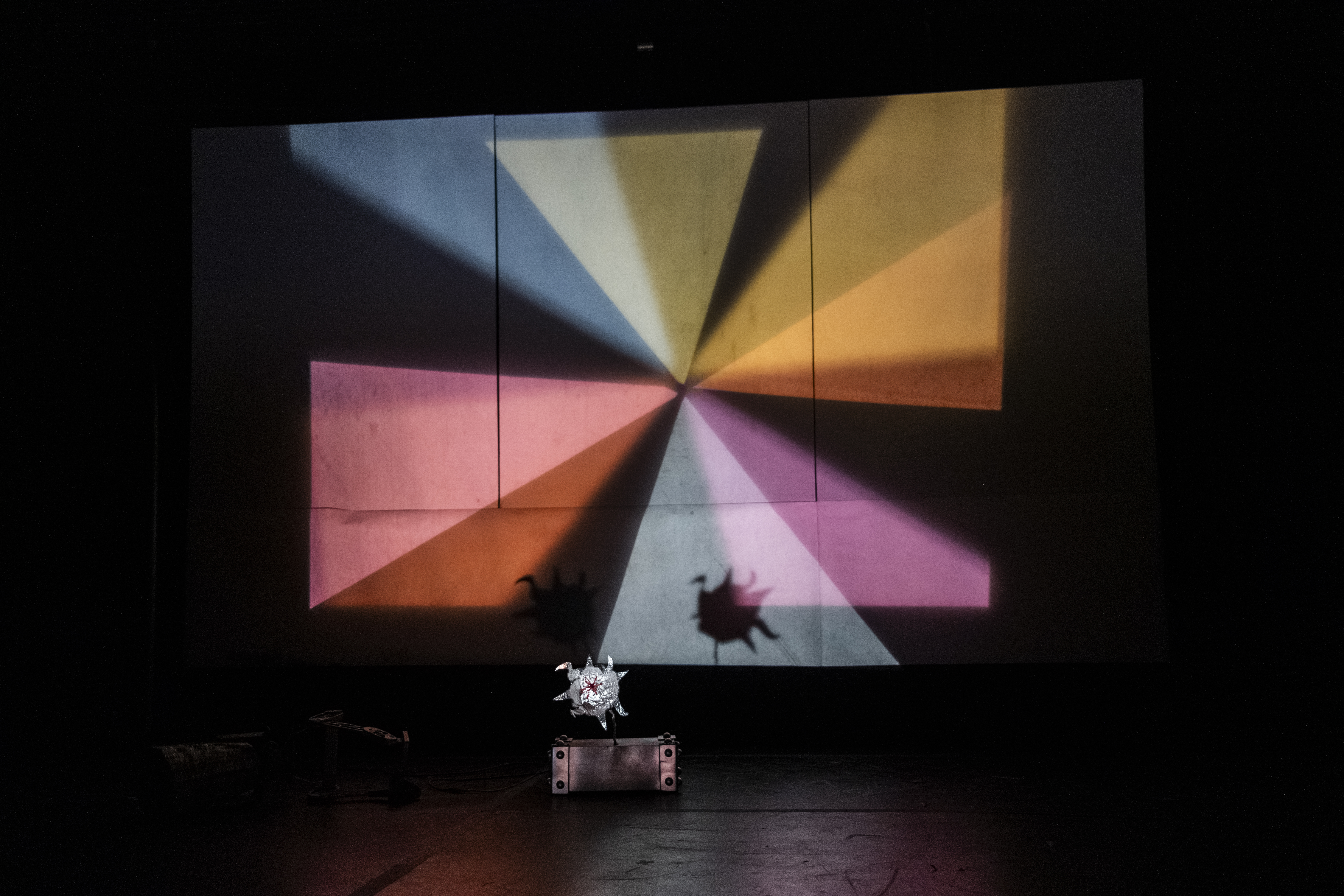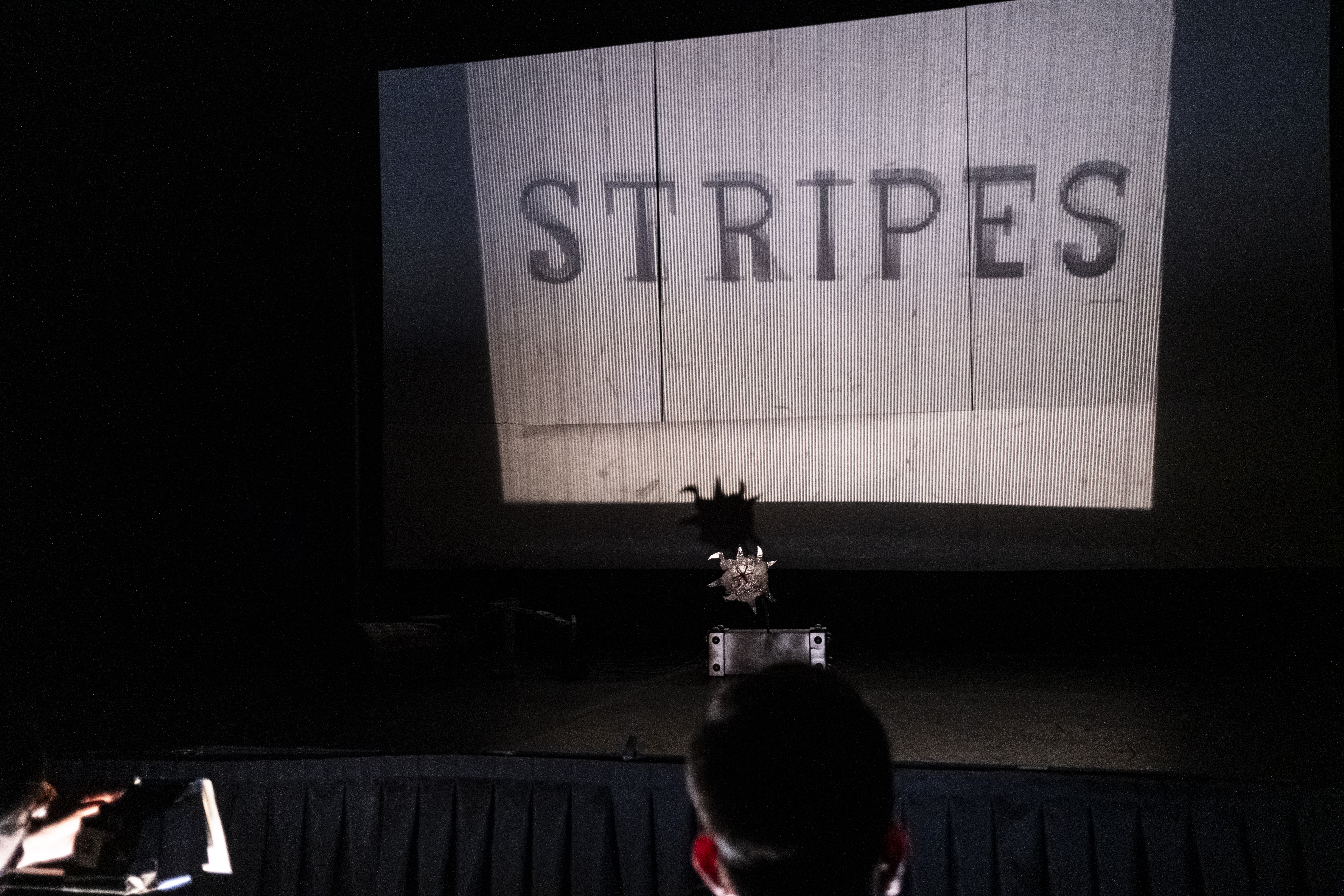 How can a puppet sense the world around it? How can the audience see what the puppet sees? How does the binary visual language of shadow puppetry (light and shadow) connect with binary computer code (1s and 0s)? In STRIPES, tabletop puppets built around barcode readers and light sensors, navigate, process, and understand their environment. Become immersed in a world where the sensorial experience of puppets comes to life through music and light.